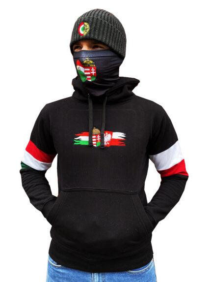 MAGYARORSZÁG ’23 KAPUCNIS PULÓVER. BELEBÚJÓS PULÓVER, REJTETT CIPZÁROS ZSEBBEL AZ ELEJÉN, 2DB CIPZÁROS ZSEB AZ OLDALÁN. BEÉPÍTETT SÍMASZK, MELY BÁRMIKOR