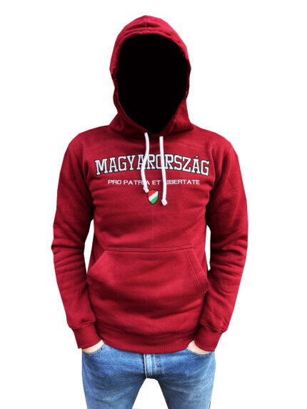 MAGYARORSZÁG PRO PATRIA BORDÓ KAPUCNIS PULÓVER. HÍMZETT MINTÁKKAL A MELLÉN, BAL UJJÁN GUMI MÁRKAJELZÉS. S-XXL MÉRETBEN.