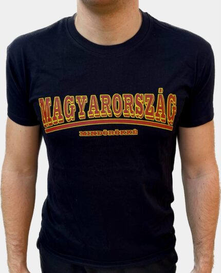 MAGYARORSZÁG '23 PÓLÓ FEKETE KÖRNYAKÚ PAMUT PÓLÓ SZITANYOMÁSSAL KÉSZÜLT MINTÁVAL A MELLKASON. S-XXXXL MERETBEN!